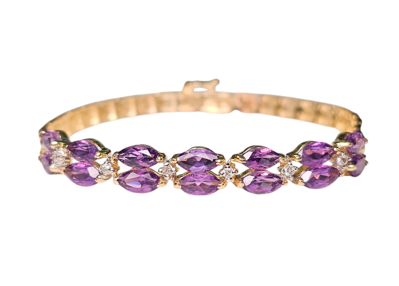 Amethyst & Diamond Multi-shape Bracelet made in 14-Karat Yellow Gold