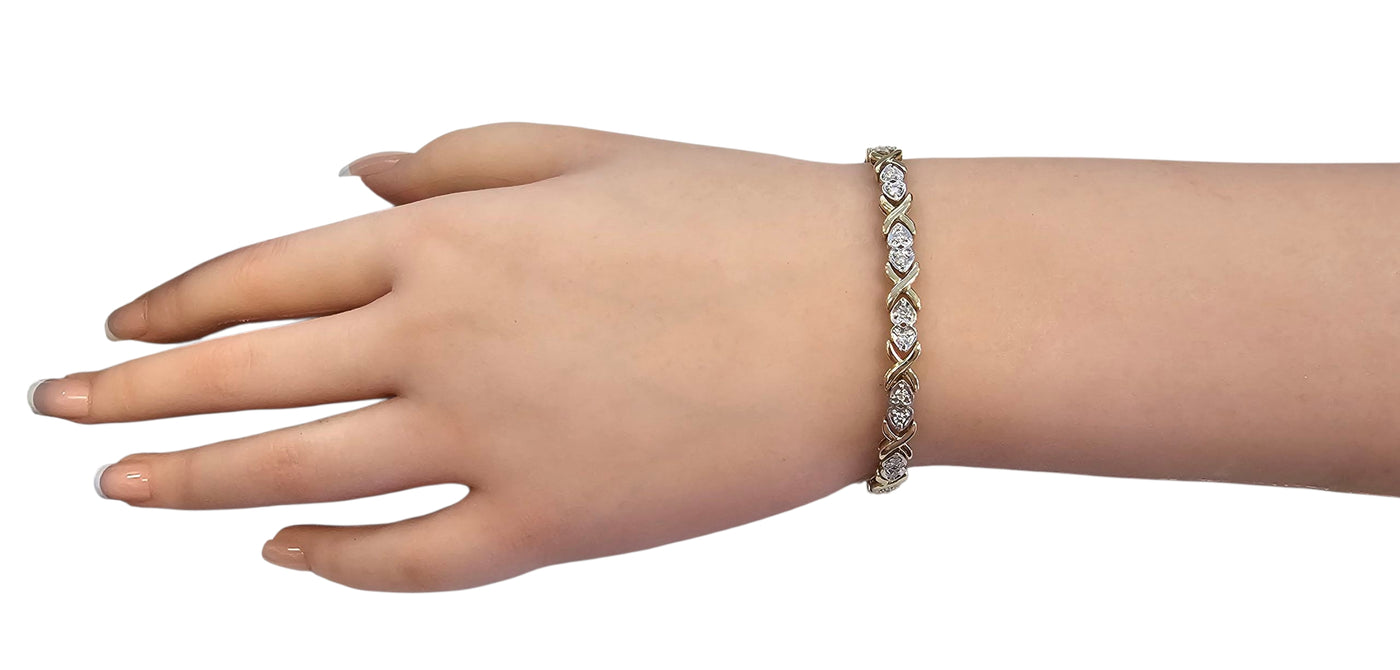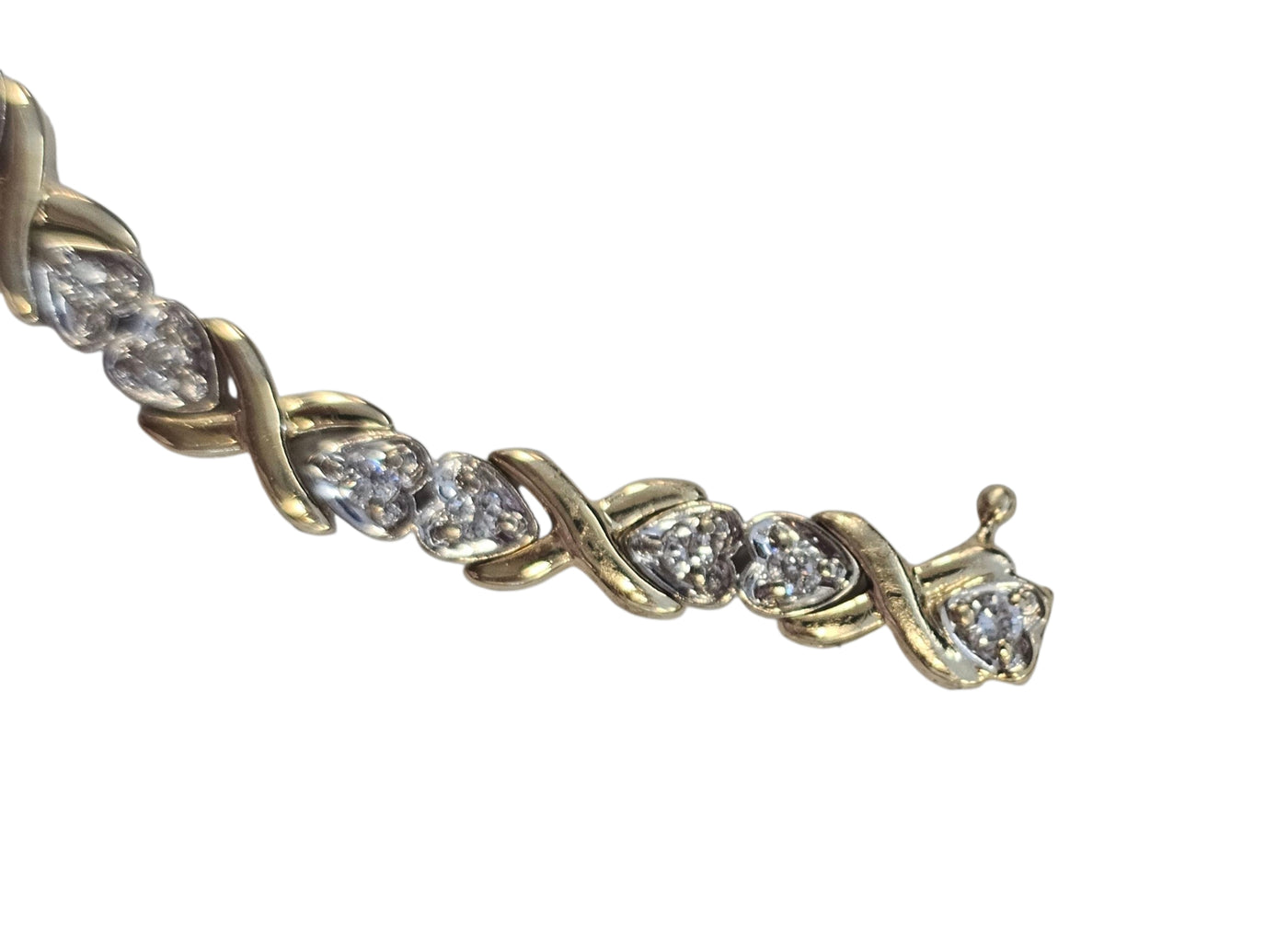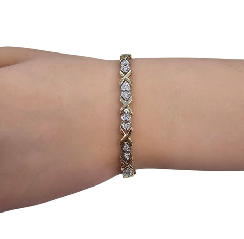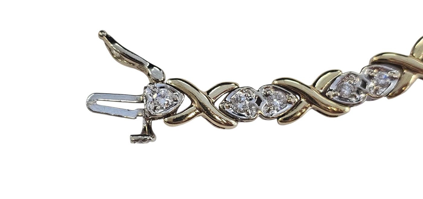 Fancy Heart Diamond Tennis Bracelet In 14Karat Two Tone Gold