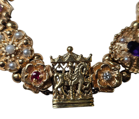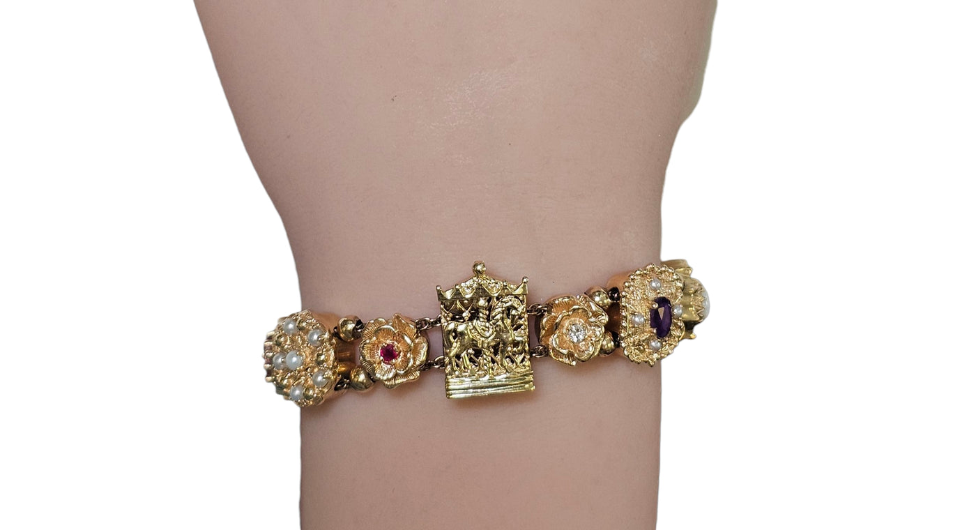 Multi-Stone Pearl Vintage Bracelet in 14 Karat Yellow Gold