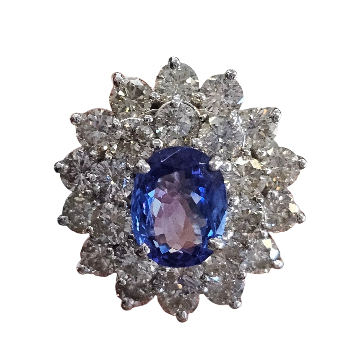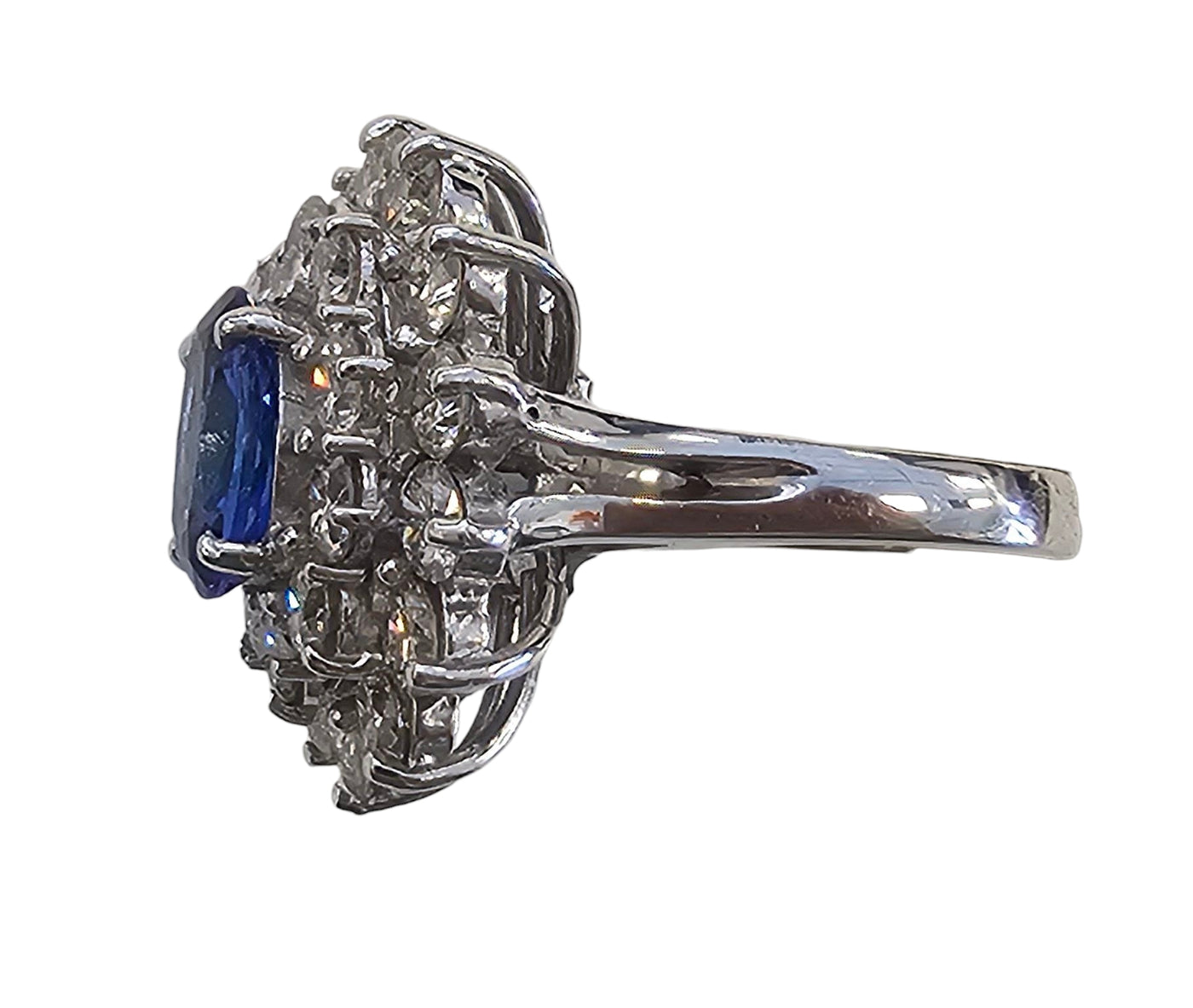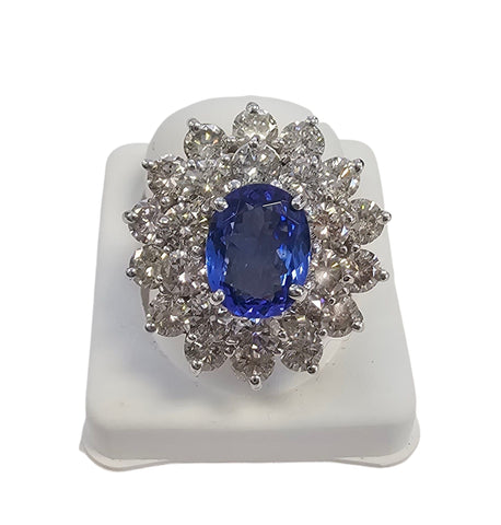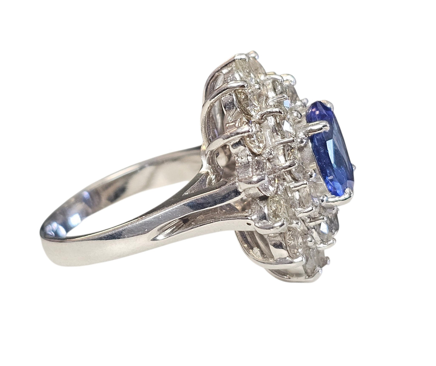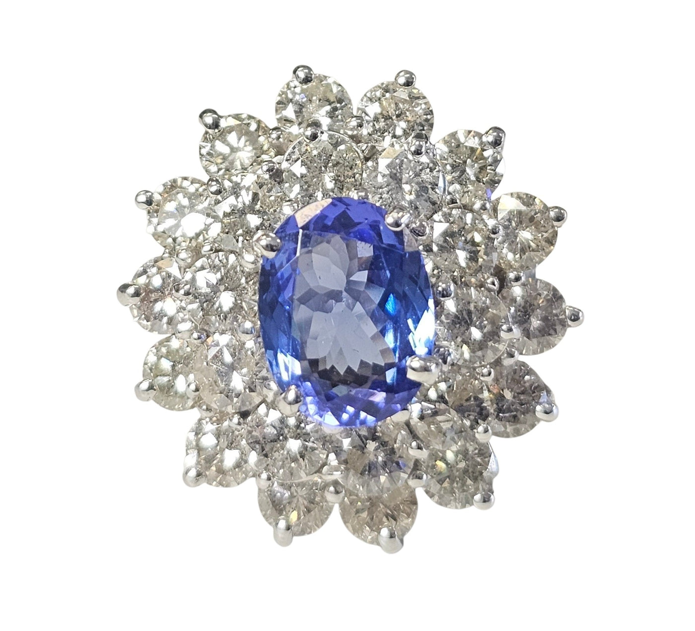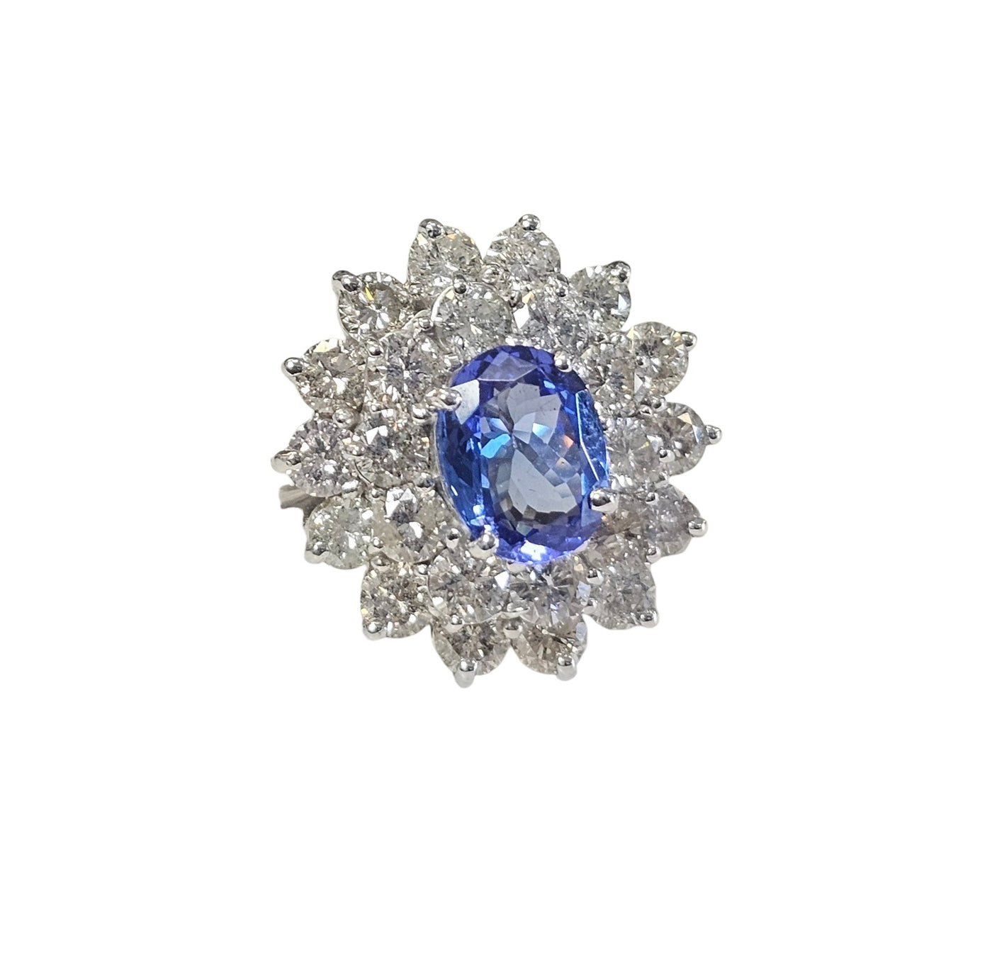 Tanzanite Diamond Flower Ring in 14Karat White Gold