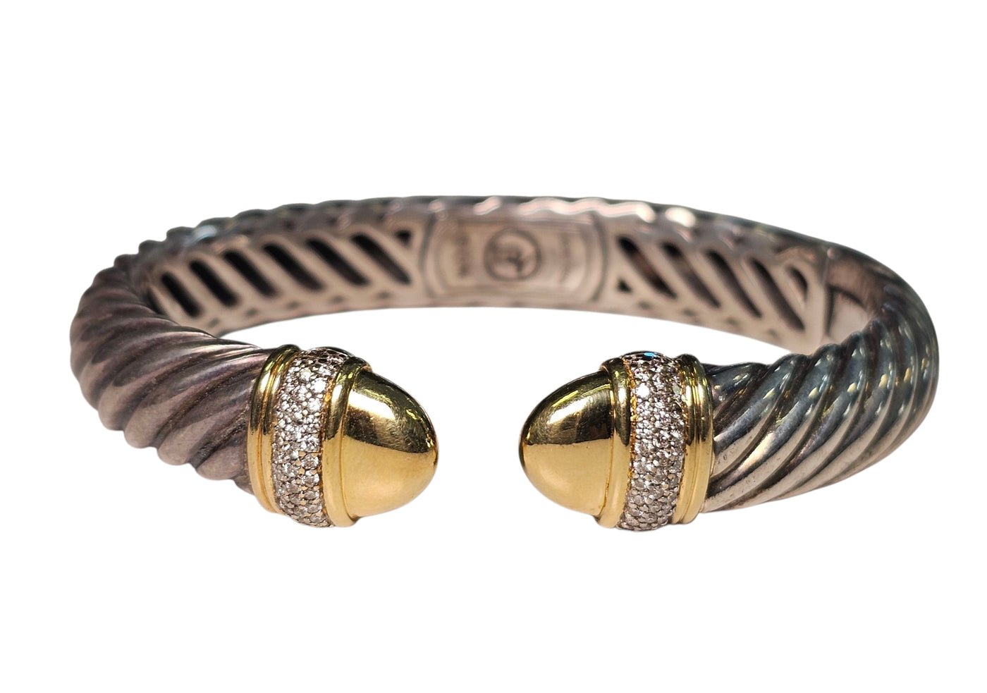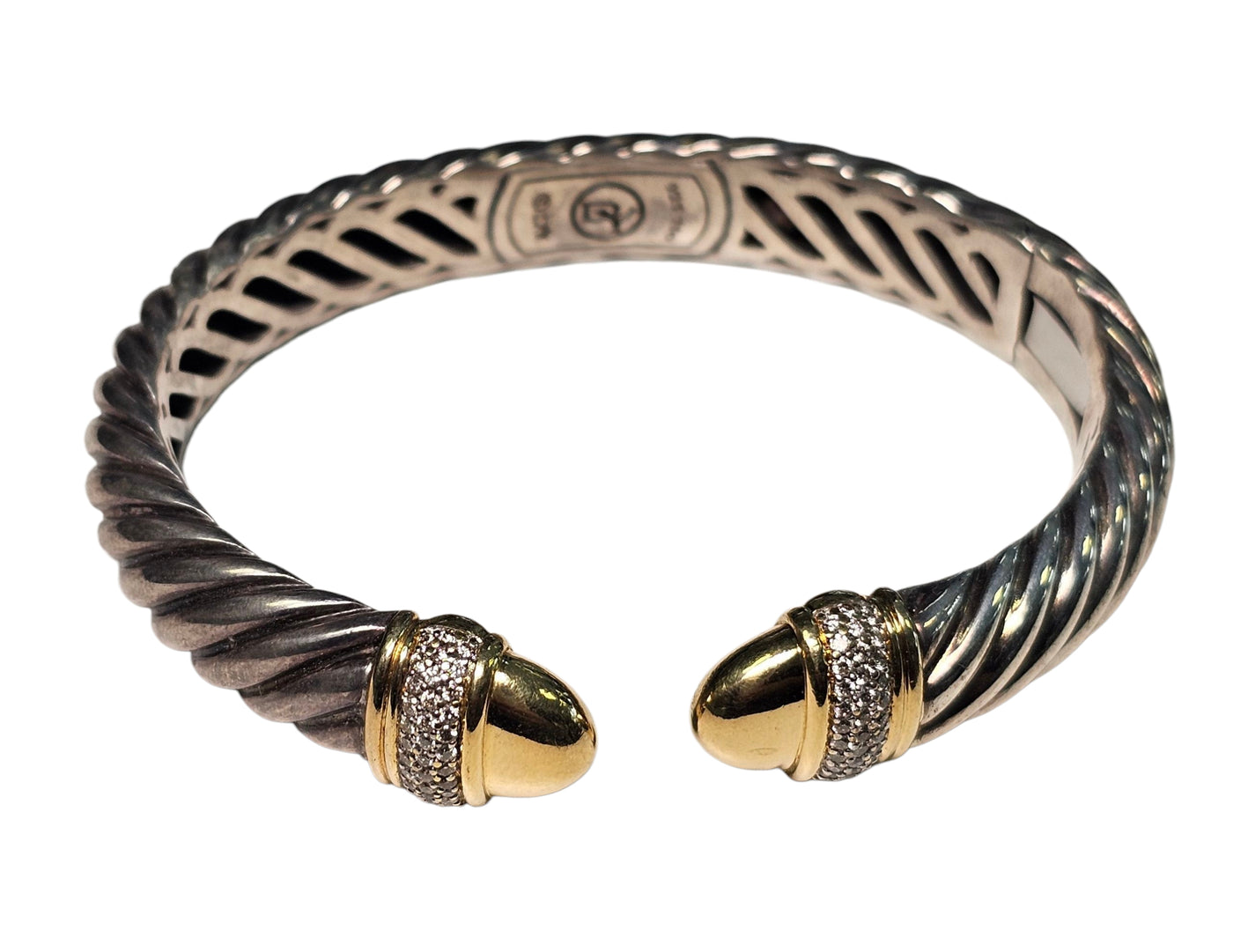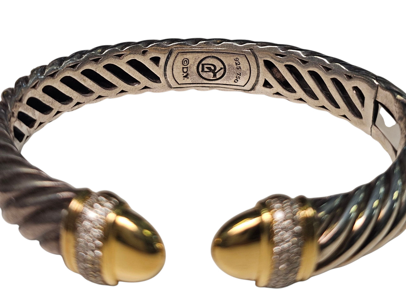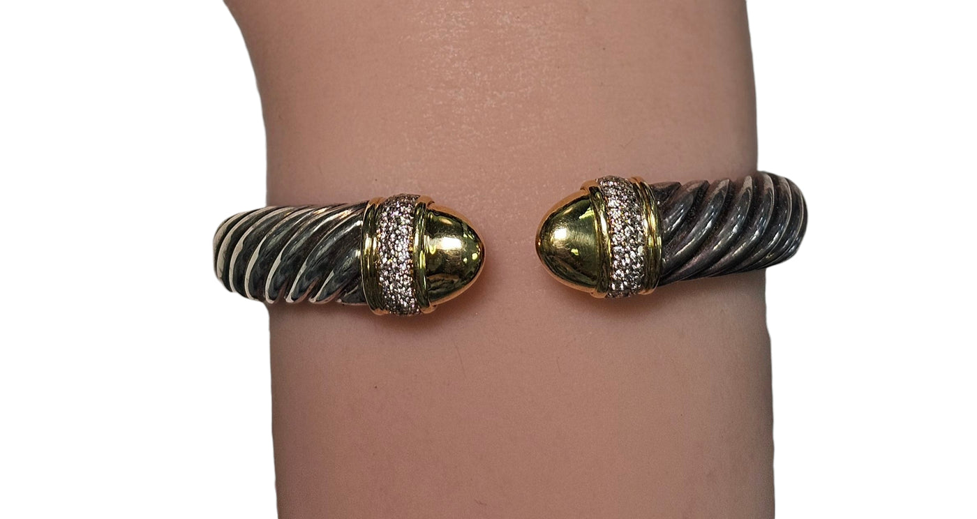 David Yurman Cable Diamond Bangle Bracelet made in Sterling Silver and 18-Karat Yellow Gold