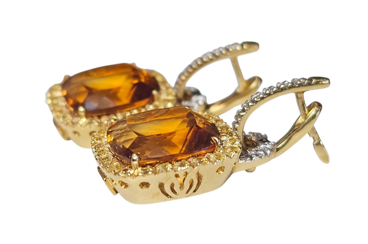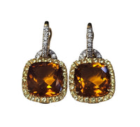 Valente Milano Cushion Cut Citrine Earrings in 18 Karat Yellow Gold