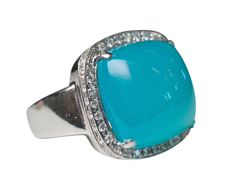 Cushion Cabochon Cut Aqua Chalcedony with Diamond Halo made in 18-Karat White Gold ( DSYQT)