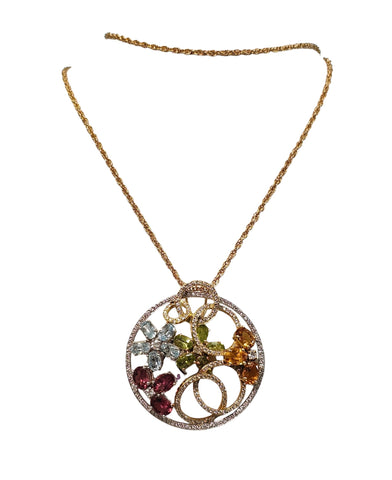 Flower Multi-Stone Diamond Pendant in 18 Karat Gold