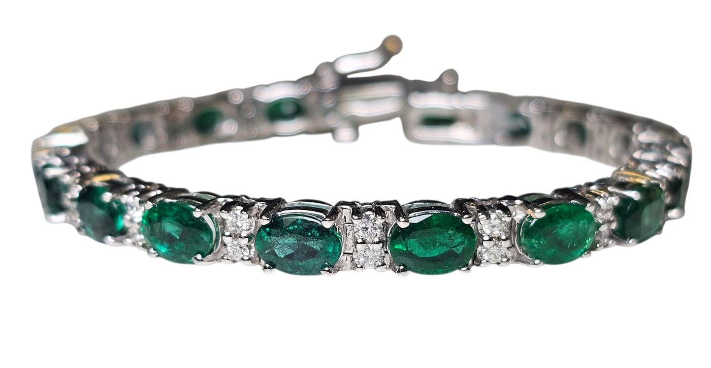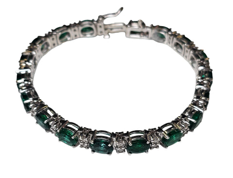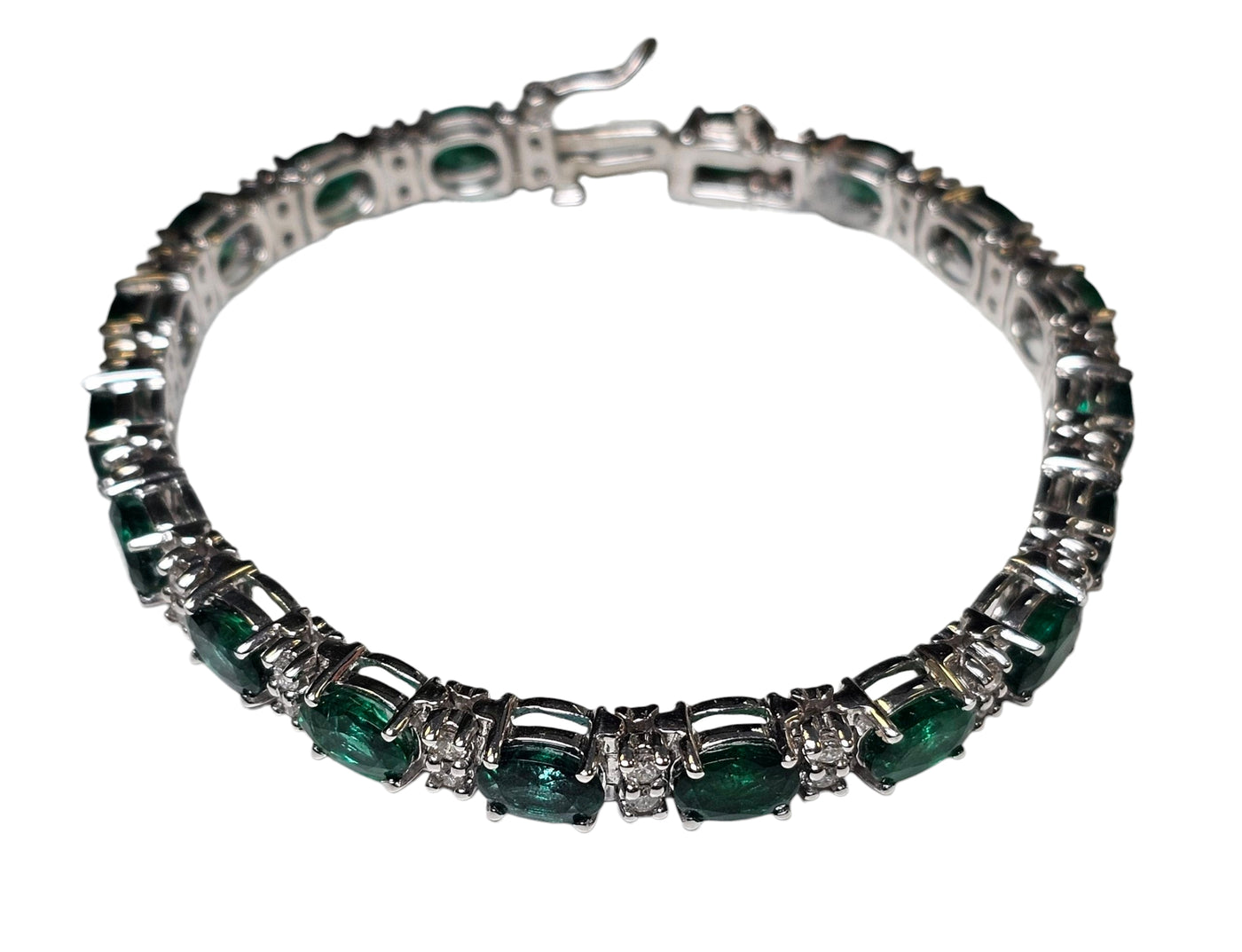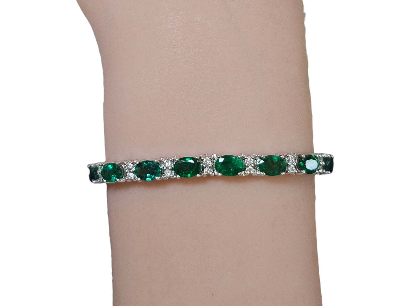 Oval Emerald Tennis Bracelet with Diamonds in 14 Karat White Gold