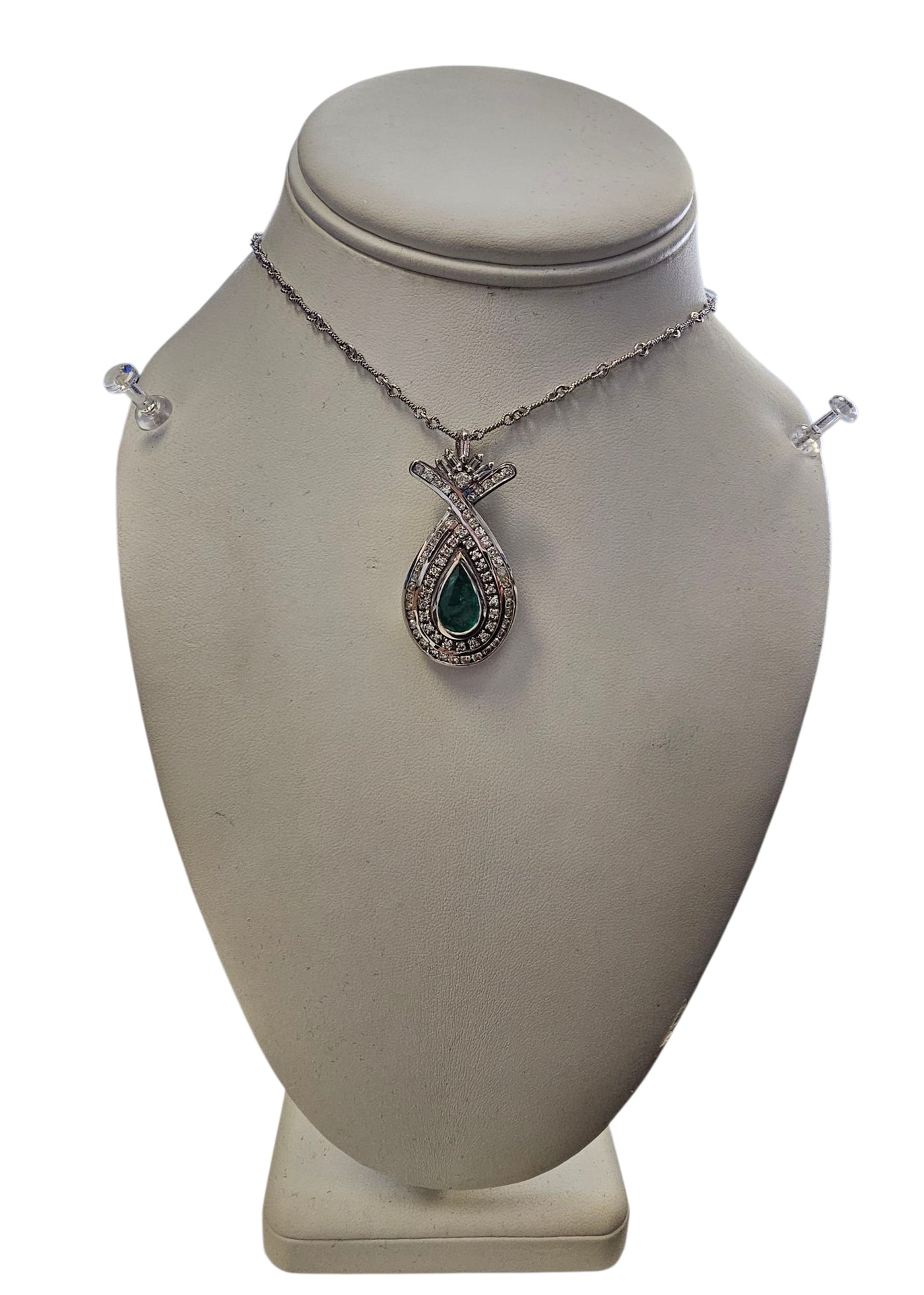 Pear Shaped Emerald Diamond Pendant in 18Karat White Gold Sale