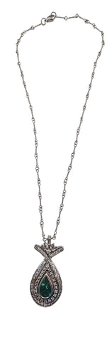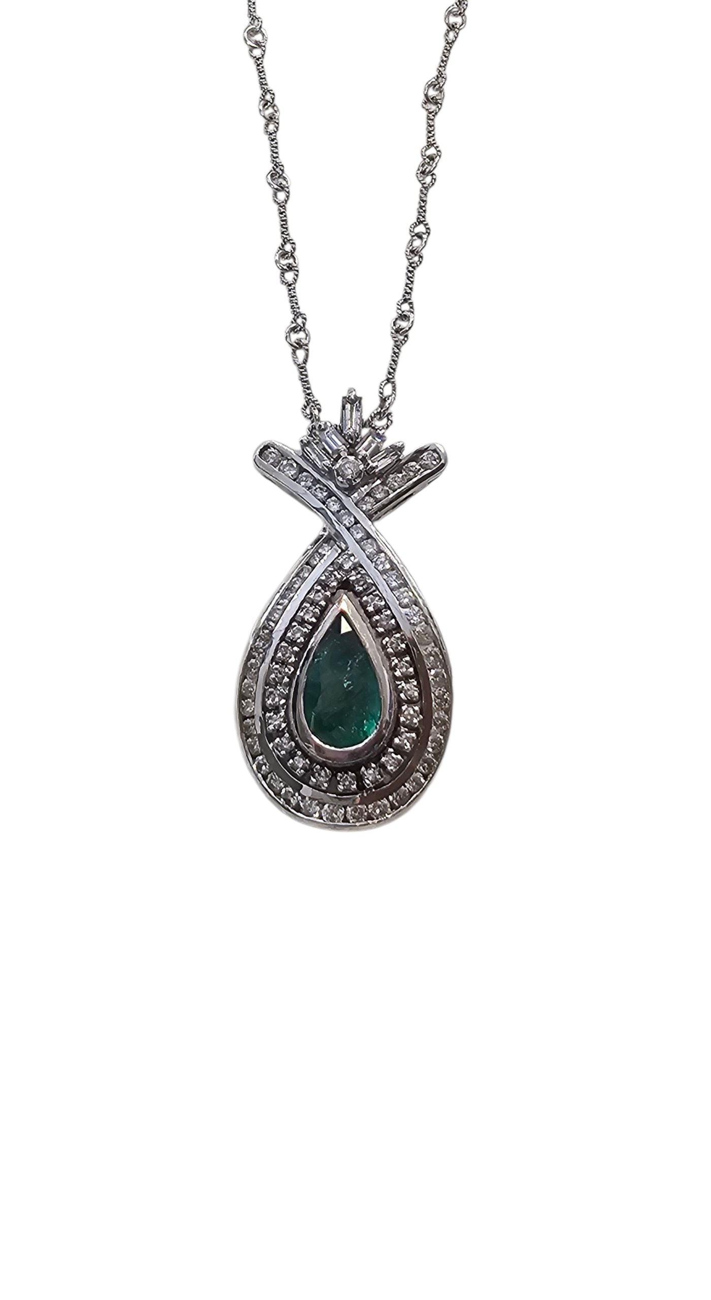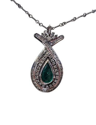 Pear Shaped Emerald Diamond Pendant in 18Karat White Gold