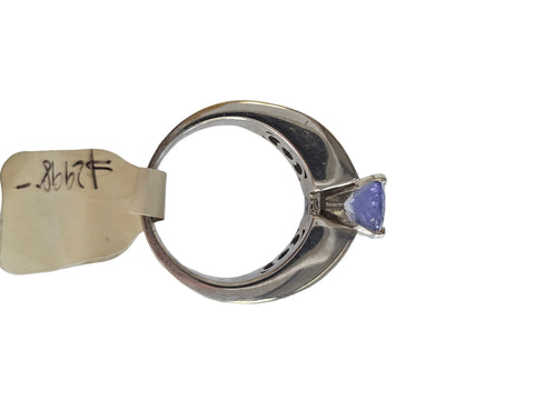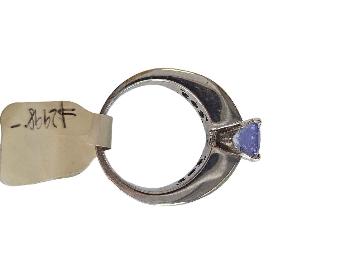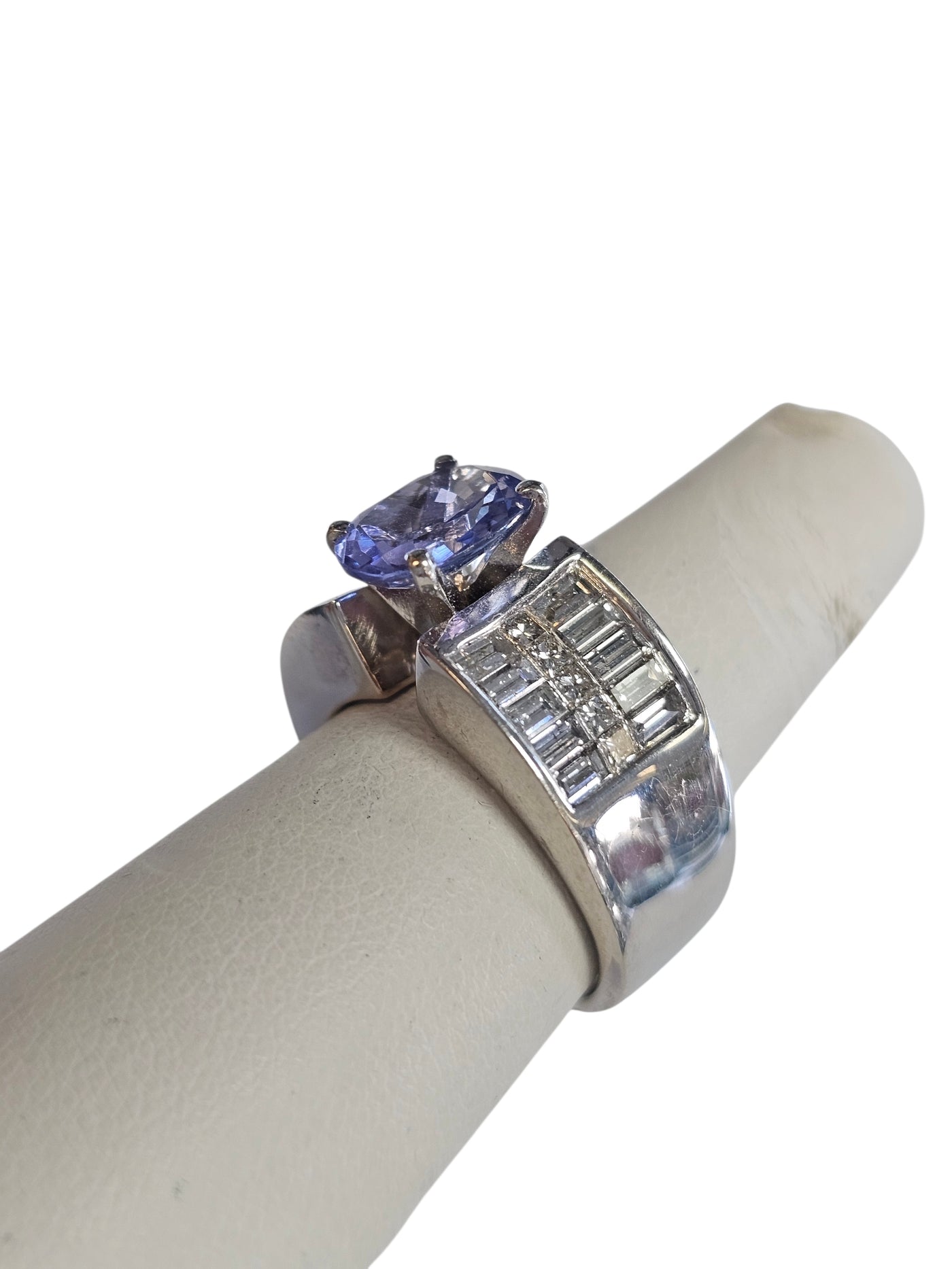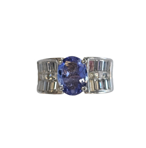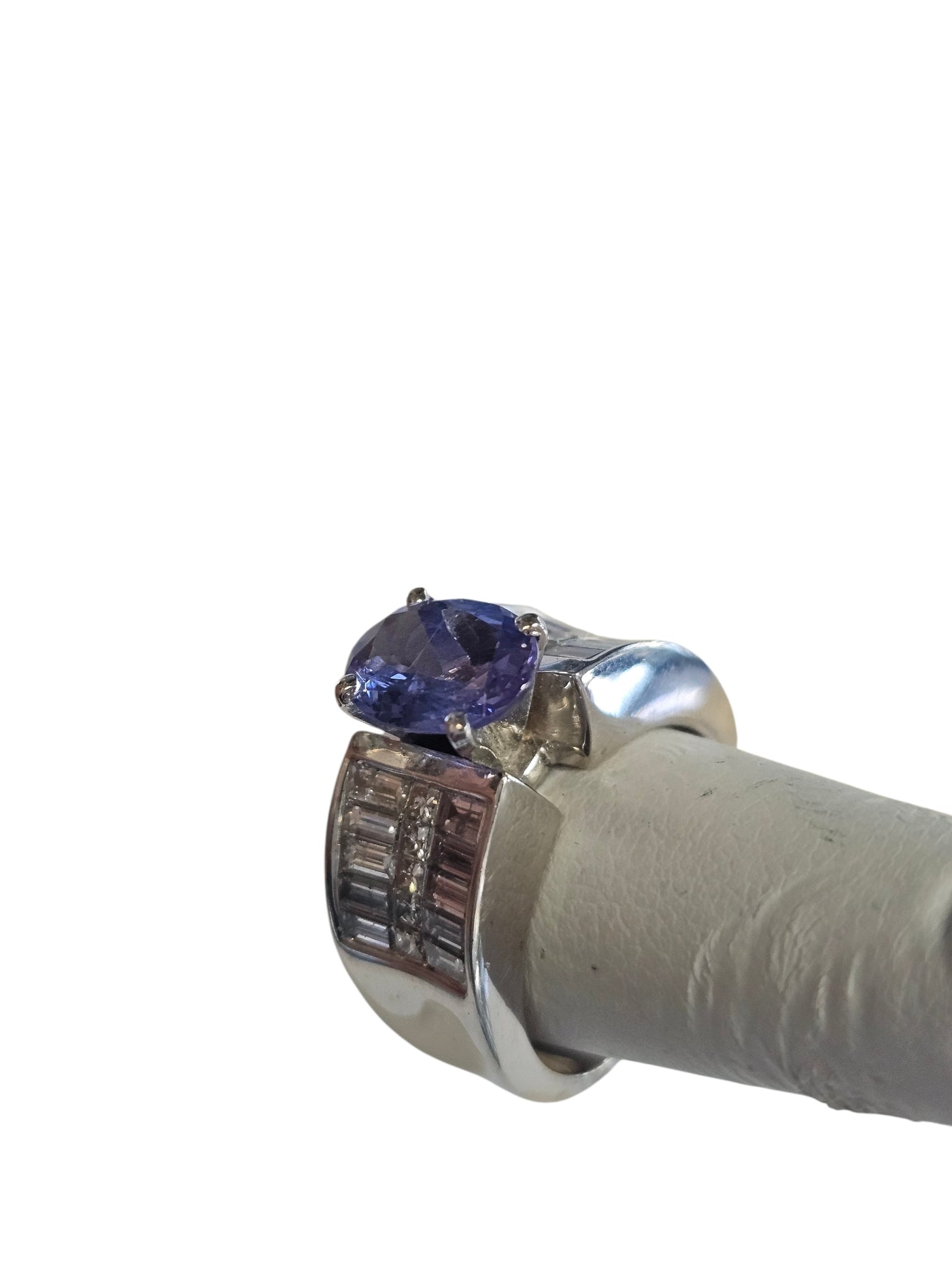 Tanzanite and Baguette Cut Diamond Ring in 18Karat White Gold