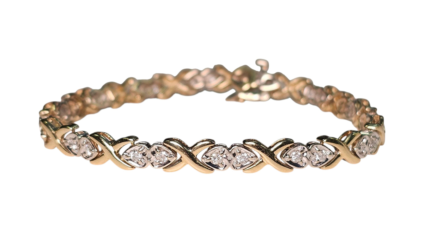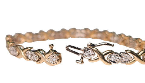 Fancy Heart Diamond Tennis Bracelet In 14Karat Two Tone Gold