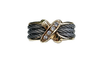 Phillipe Charriol Diamond X Cable Ring made in 18-Karat Yellow Gold and Stainless Steel