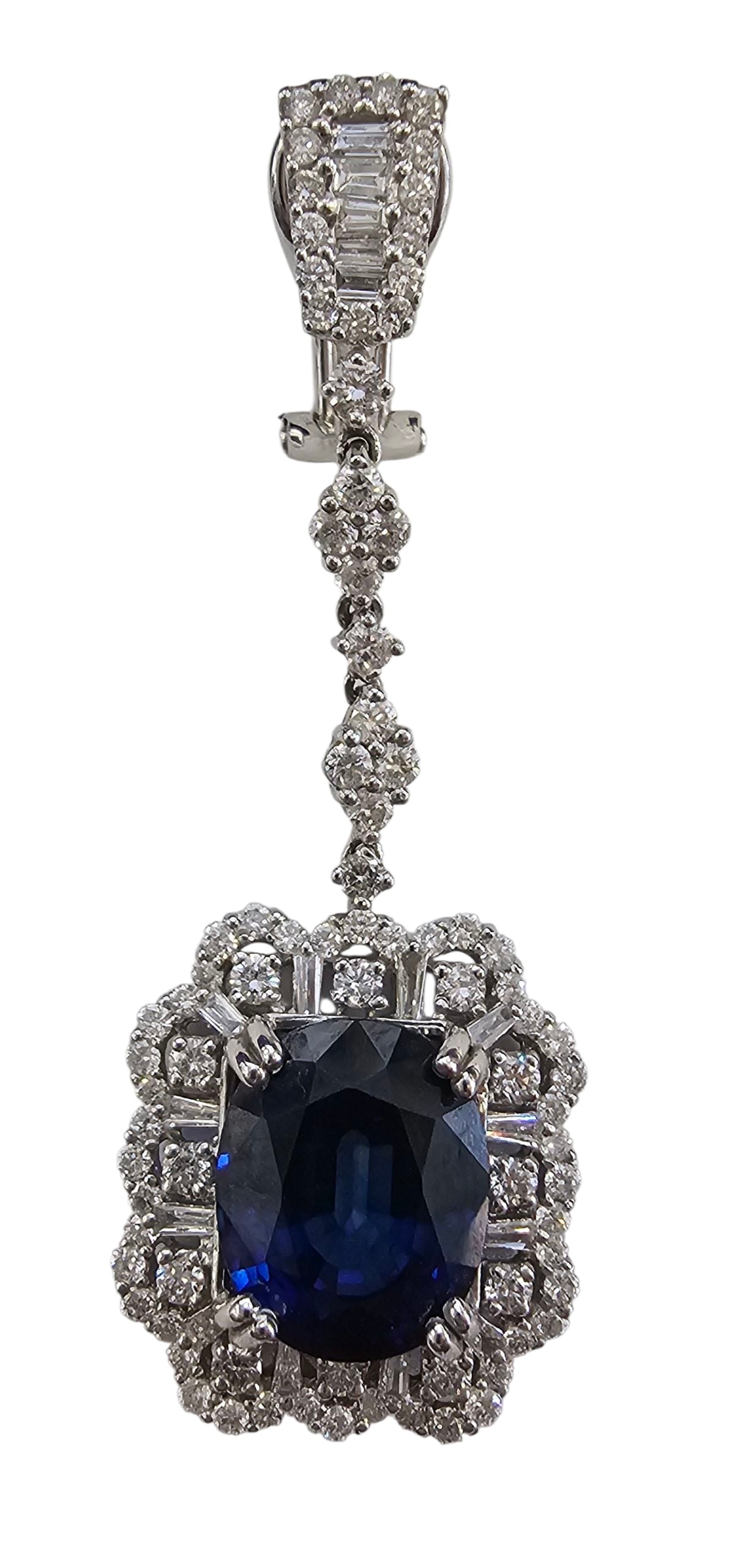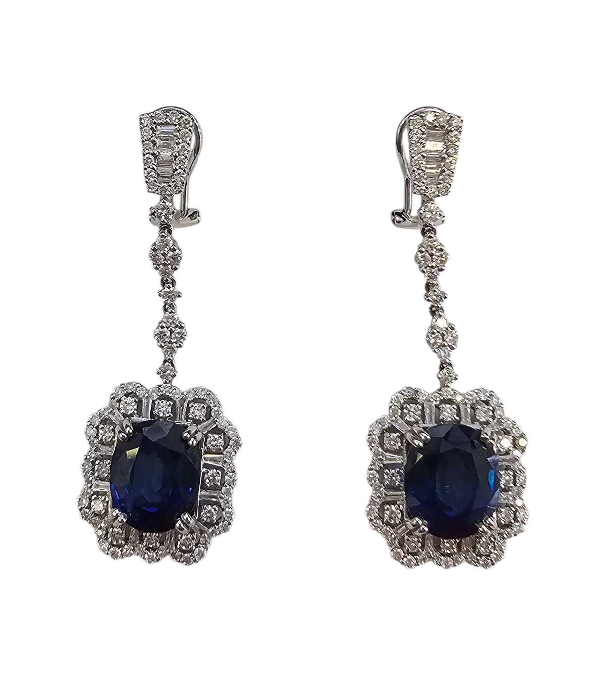 Blue Sapphire Diamond Dangling Earrings in 18Karat White Gold