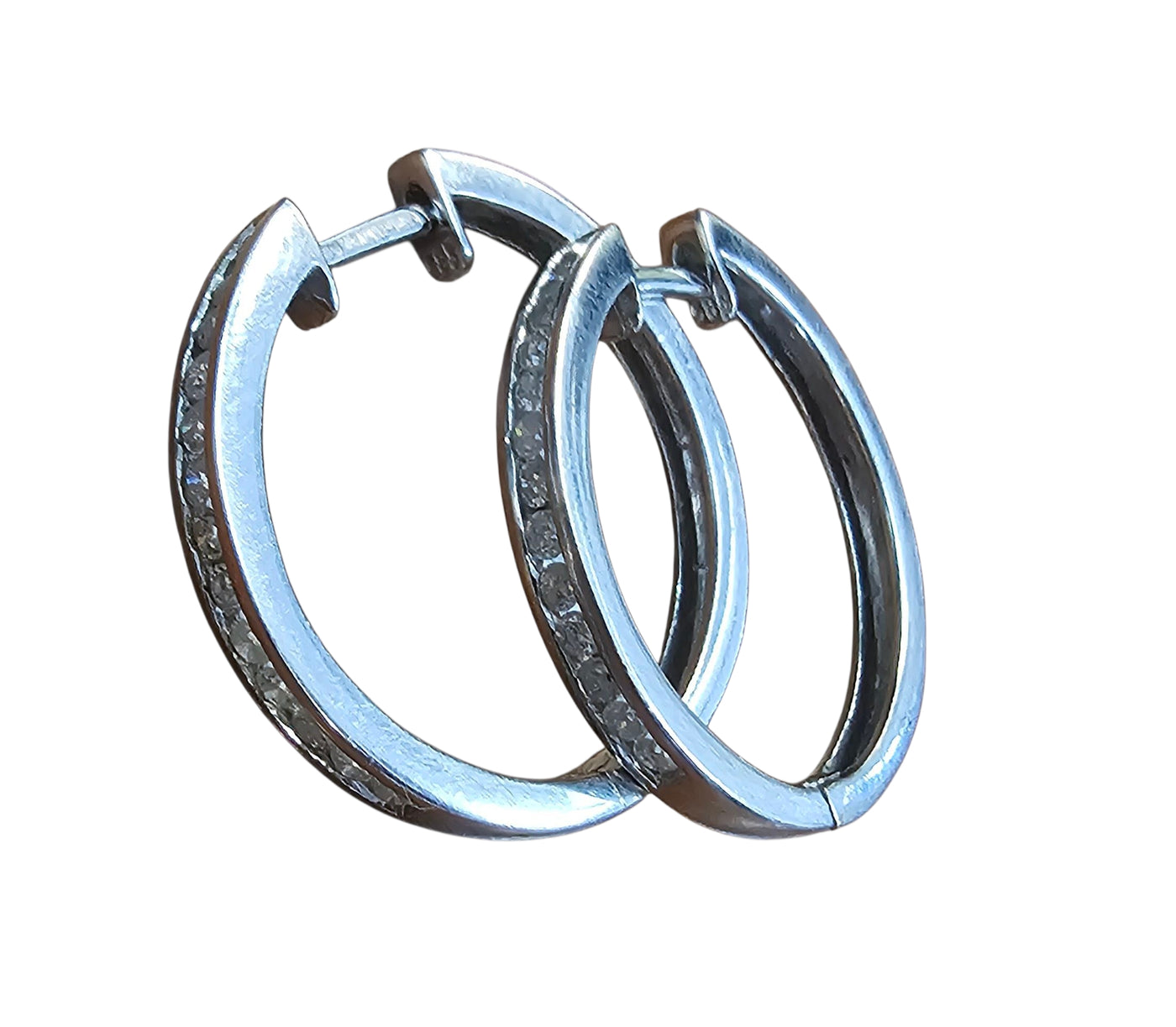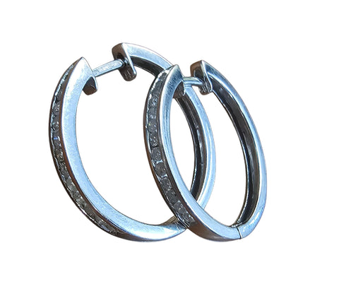 Diamond Hoop Earrings in 14Karat White Gold Sale