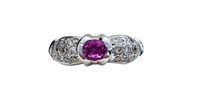 Oval Cut Pink Sapphire Half-Bezel and Pave set Diamond Ring made in 14-Karat White Gold