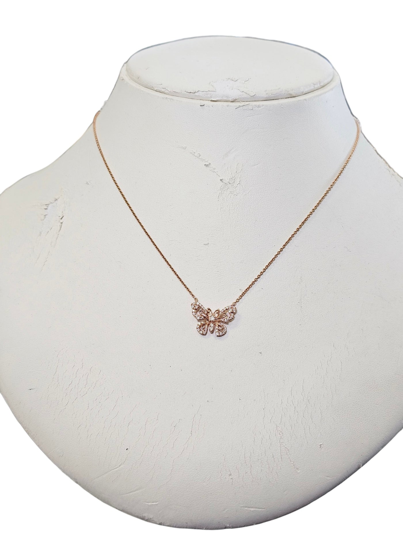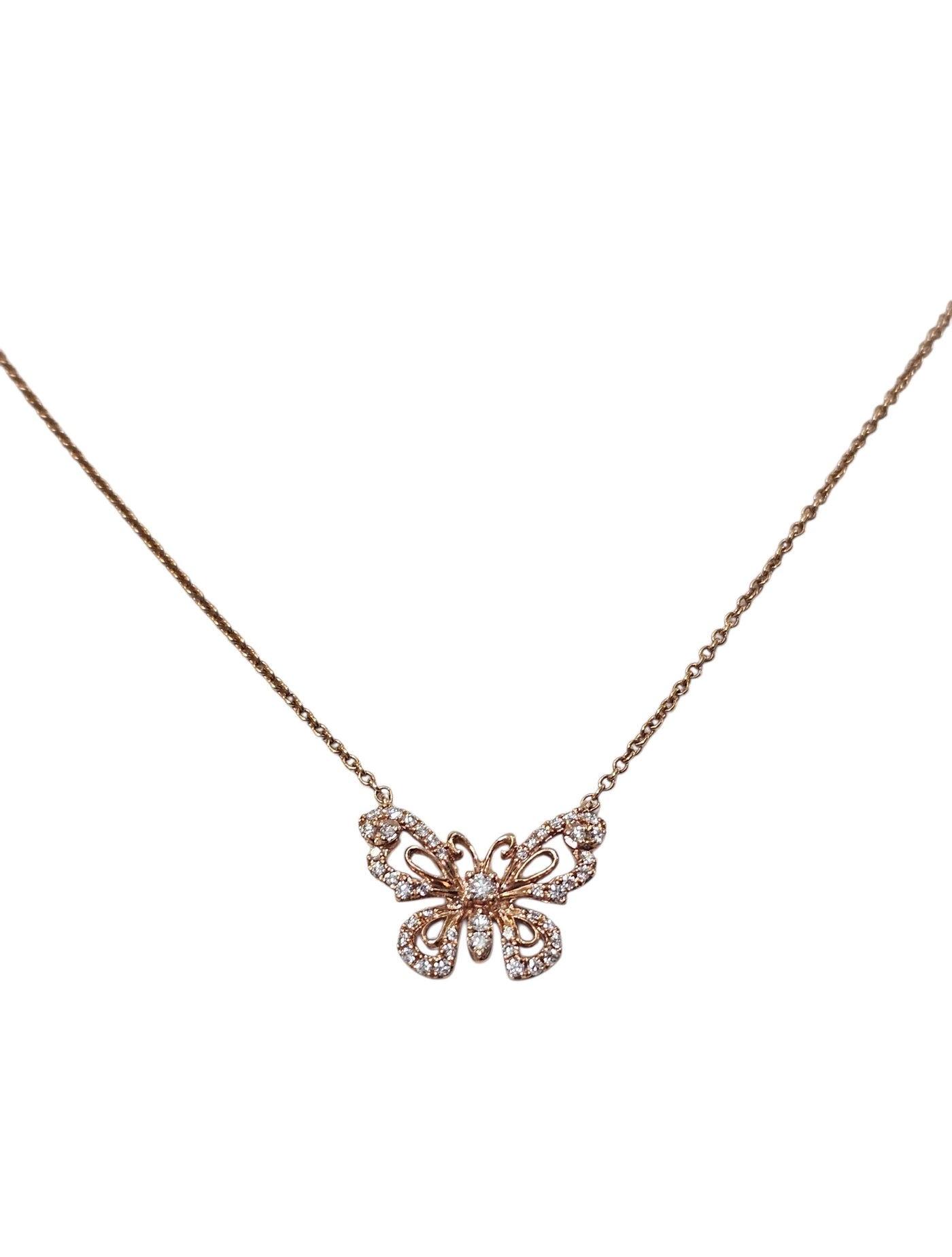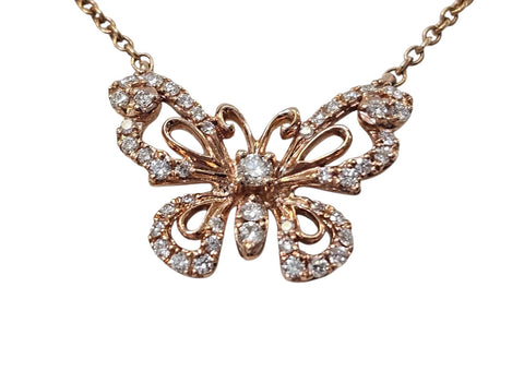 Butterfly-Shaped Diamond Pendant, 14K Rose Gold