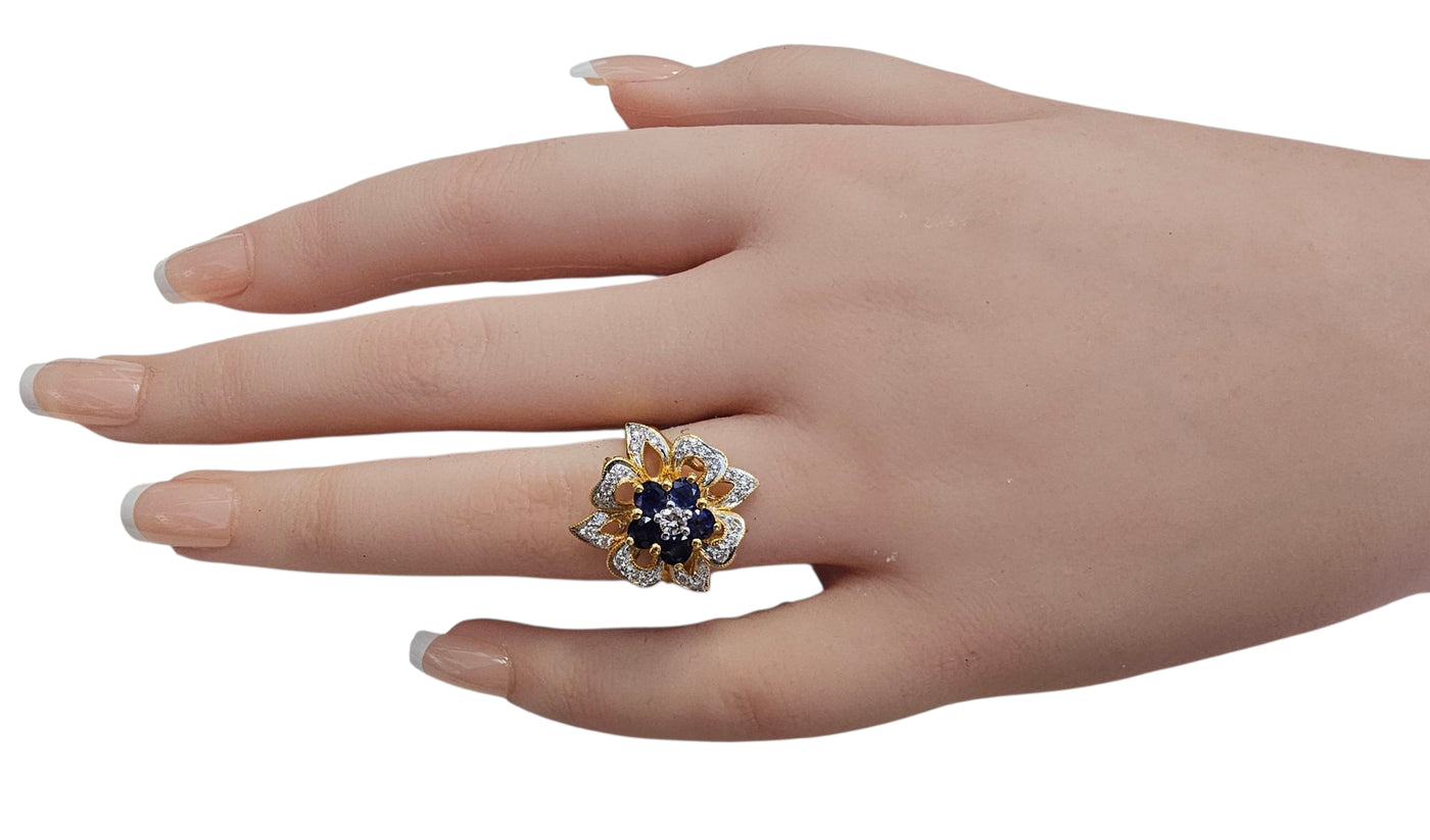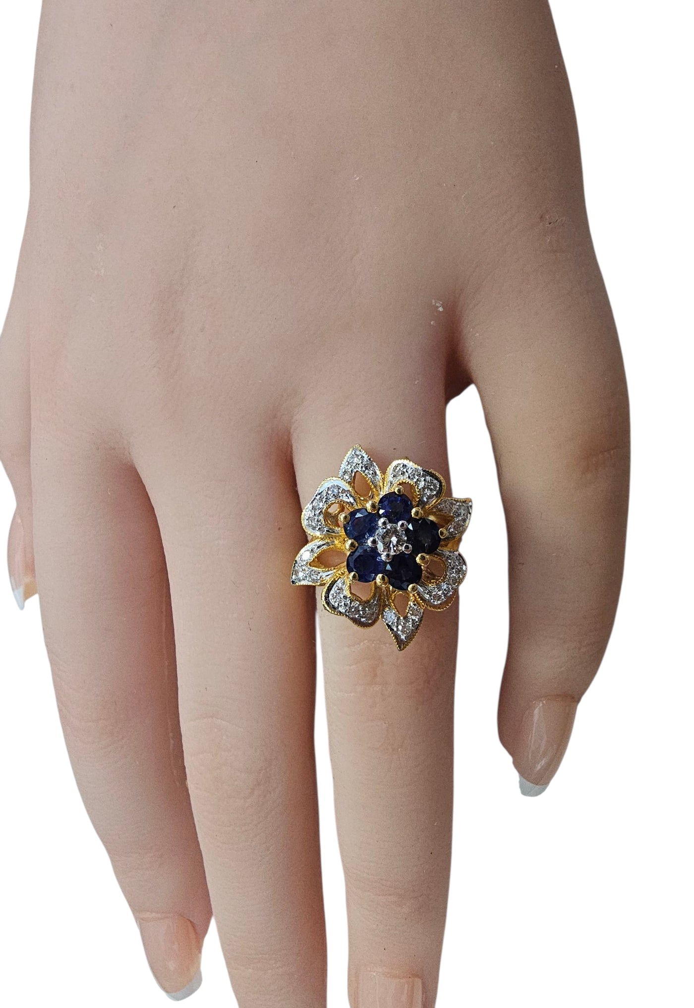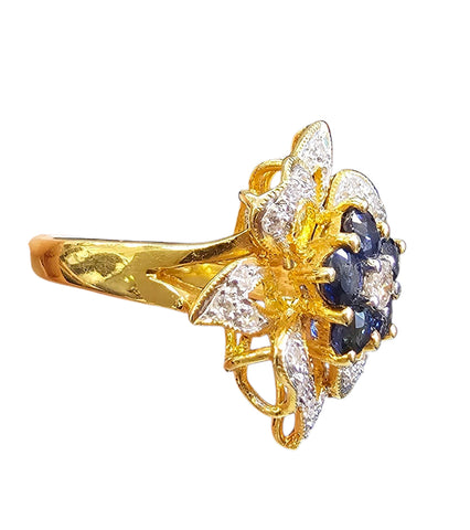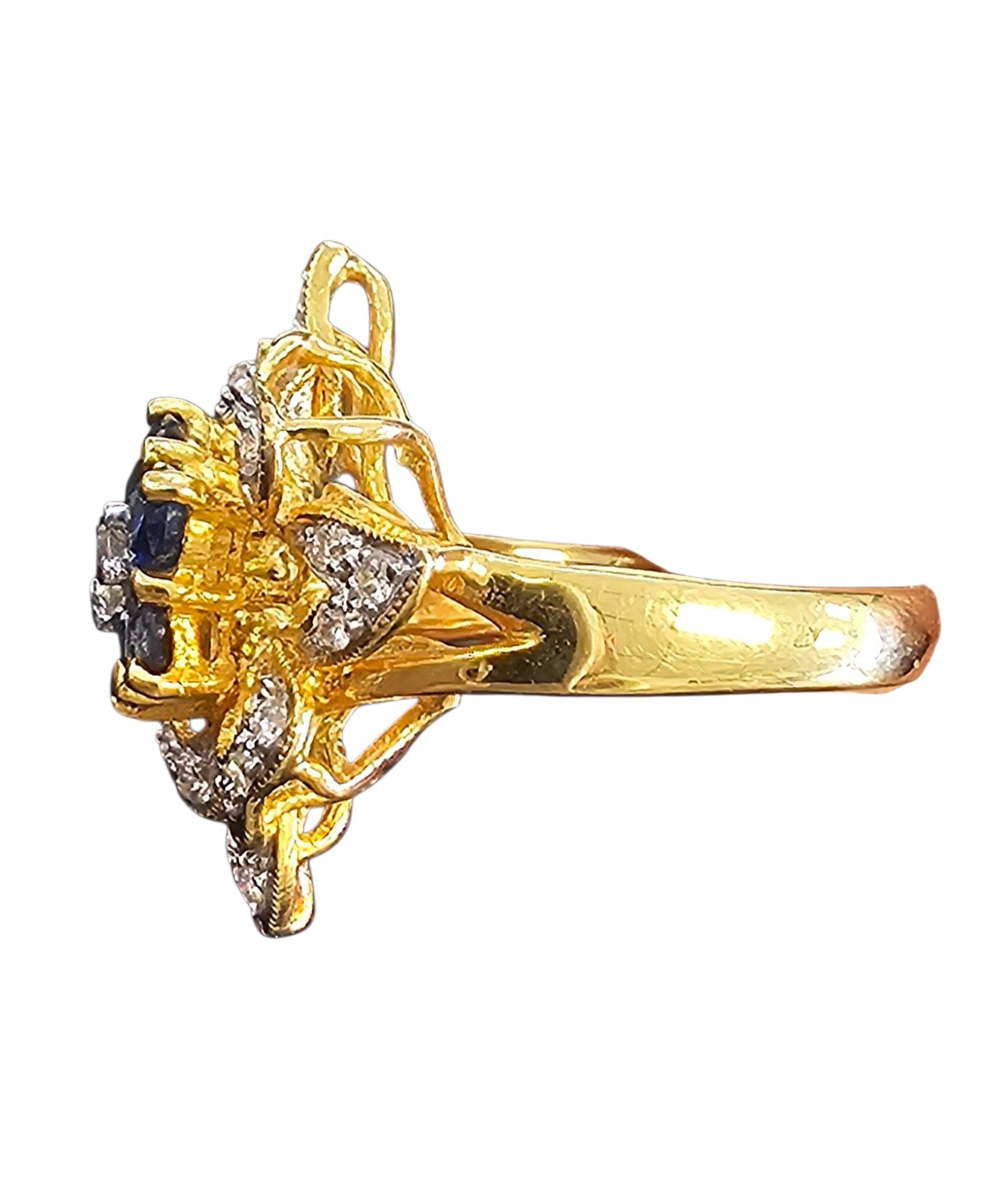 Blue Sapphire Diamond Flower Ring in 20Karat Yellow Gold