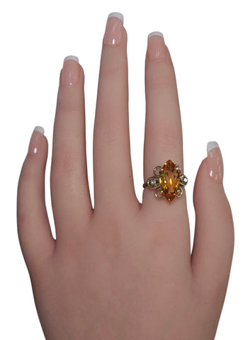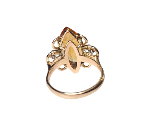 Marquise Citrine Diamond Ring in 18 Karat Yellow Gold