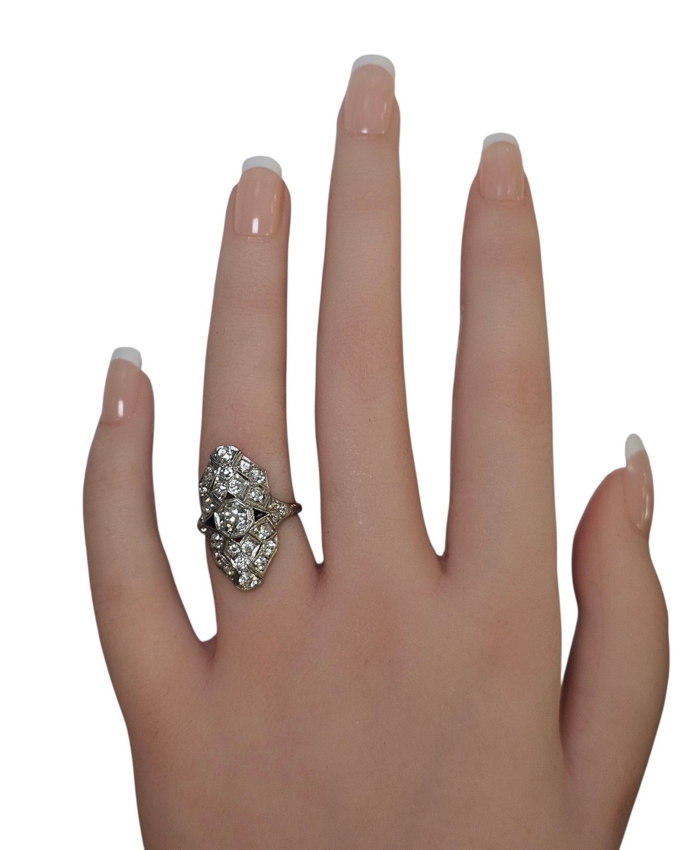 Platinum Euro Cut Art Deco Diamond Ring Women's Preowned