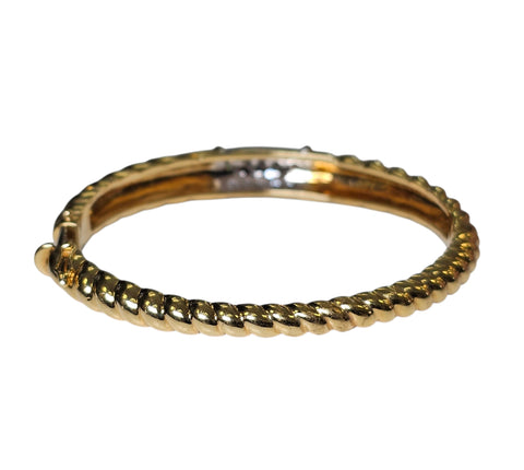 Twisted Style Bangle Bracelet with Diamond Pave made in 18-Karat Yellow Gold.